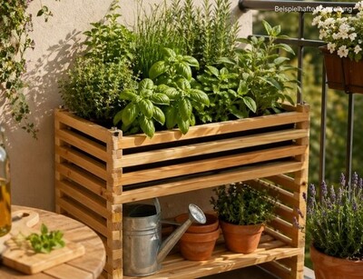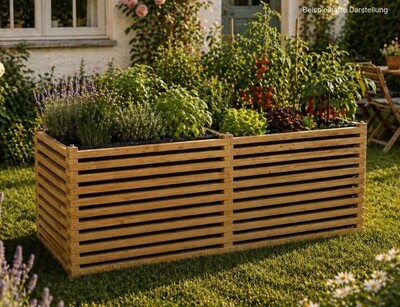 Das robuste Lärchenholz der Hochbeete ist witterungsbeständig, nachhaltig und sorgt für ein warmes, natürliches Ambiente im Beet.
