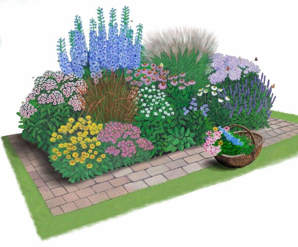 Blühende Staudenmischung: Enthält eine große Auswahl an Stauden, welche über das ganze Jahr verteilt blühen.