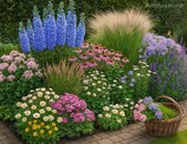 In der Mischung finden Sie bekannte Stauden wie Schlüsselblume und die Margerite ‚Maikönigin‘ sowie besondere Highlights wie den Frauenmantel, dessen Blüte und Blätter als dekoratives Beiwerk wichtiger Blüten dienen. Kleine Nelken setzen nostalgische Akzente in der Vase, während der Rittersporn ‚Blue Lace‘ mit Größe und Farbwirkung beeindruckt – sowohl im Beet als auch als Schnittblume.