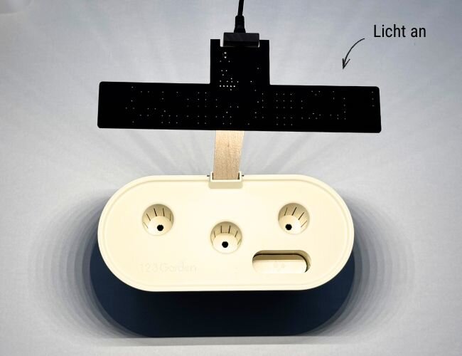 Für optimales Wachstum empfehlen wir, die LED-Lampe morgens anzuschließen. Wenn Sie dies zu einer anderen Tageszeit tun, ist das auch kein Problem, denn die LED-Lampe ist so konzipiert, dass sie sich nach einigen Tagen der Synchronisierung an den Tag-Nacht-Zyklus anpasst.