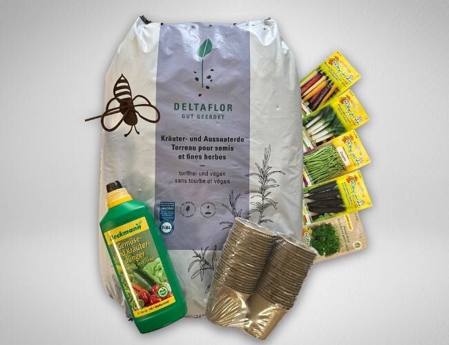 Gebrauchsfertige Kräuter- und Aussaaterde von Deltaflor 30 l Sack für Küchenkräuter im Topf, Für Kräuter im Garten und zur Saat von Kräutern, Gemüse und Blumen.